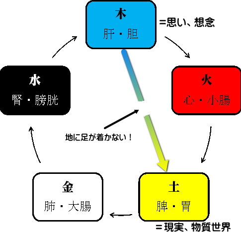 要は「木」の亢進した気を「土」につなげて降ろして中和させることが目標になります