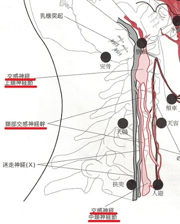 自律神経系は主に頸部の交感神経幹の緊張緩和を図った施術が多いです。